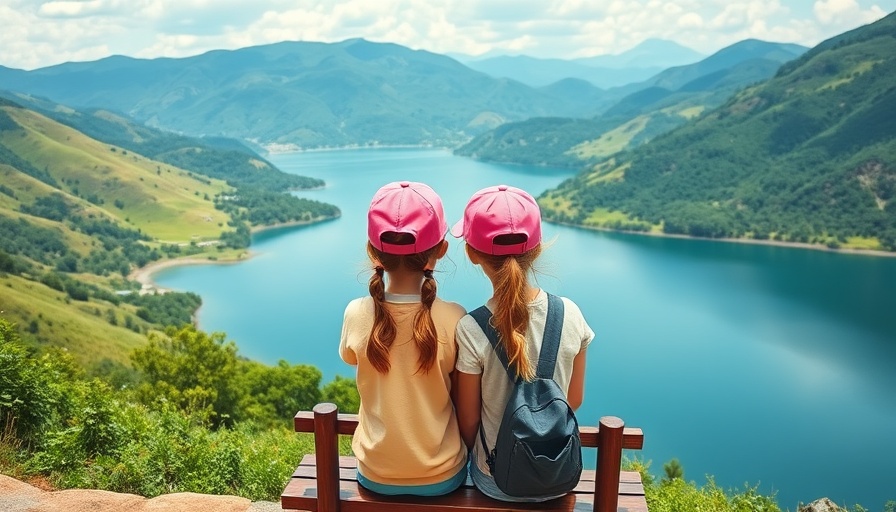 Girls enjoying nature by a serene lake during a family vacation to Branson.